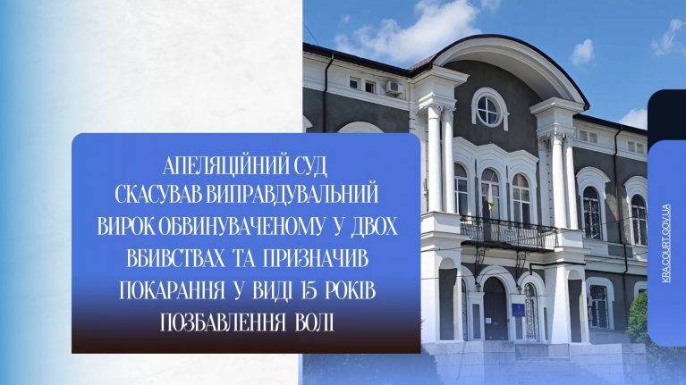 Таким чином, за результатами розгляду колегія суддів ухвалила новий вирок, яким скасувала вирок Кіровського районного суду м. Кіровограда від 14 грудня 2023 року та визнала особу К. винуватим у вчиненні кримінальних правопорушень, передбачених ч.1 ст. 115, п.п.4, 13, ч. 2 ст. 115 КК України та призначила йому покарання у виді позбавлення волі на строк 15 років, без конфіскації майна. Обвинувачений К. був взятий під варту в залі апеляційного суду.