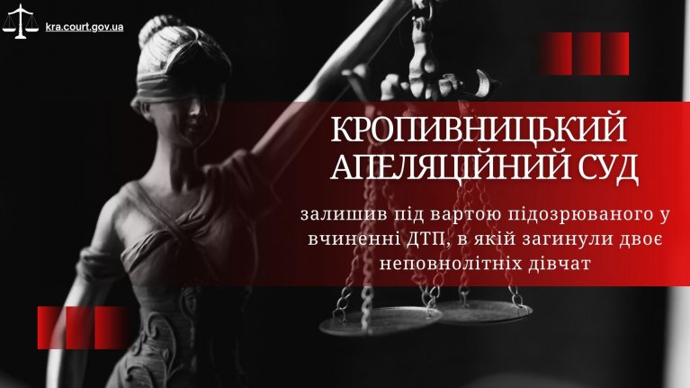 Кропивницький апеляційний суд залишив під вартою підозрюваного у вчиненні ДТП, в якій загинули двоє неповнолітніх дівчат