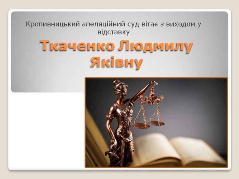 Колектив Кропивницького апеляційного суду висловлює щиру вдячність за роки Вашої праці, які стали вагомим внеском у здійснення правосуддя, утвердження принципів законності та справедливості. Щиро дякуємо за Ваш професіоналізм, мудрість та відданість справі.